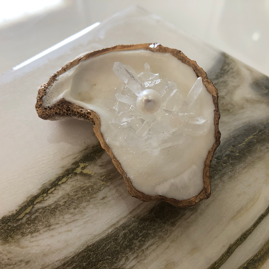 I like to think of the magic of creation. We can't see it but we know that it's happening because of the end result. For us, when we open an oyster, a pearl is reveled in the mix of a lot of goo. In this goo is where the magic happens. In this "Sincerity" Collection, I crystallized this creative mass to present to you a simple pearl. Pearls signifies faith, charity, and innocence. It enhances personal integrity and helps to provide focus to ones attention. They symbolize purity and known for sincerity. They also increase fertility and ease childbirth.